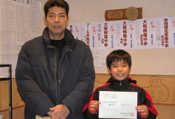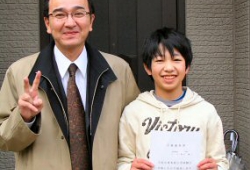 着実に実力を伸ばし、みごと大阪桐蔭に合格した吉田君。 お父さんとともにに合格報告。手には合格証書が。